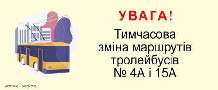 - УВАГА! Тимчасова зміна маршрутів тролейбусів № 4А та 15А Транспорт